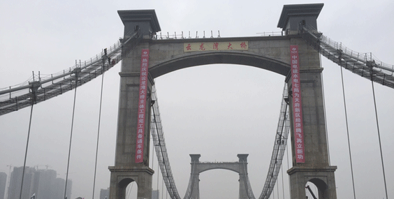 中國(guó)首座大跨度鐵路懸索橋-麗香鐵路金沙江特大橋 首個(gè)散索鞍順利安裝到位